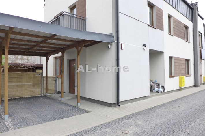 Przy wejściu do mieszkania znajduje się jedno miejsce parkingowe pod wiatą.