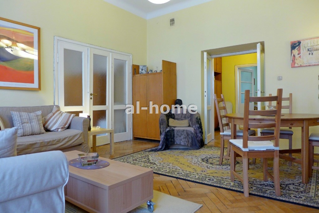 Mieszkanie do remontu. Dwa pokoje 21 i 14 m2 z oddzielnymi wejściami z przedpokoju i połączone ze sobą. Łazienka 3,6 m2, oddzielne wc 1,5 m2, widna kuchnia 8,5 m2. Okna wymienione na nowe drewniane. Wysokość pomieszczeń 3,25 m.