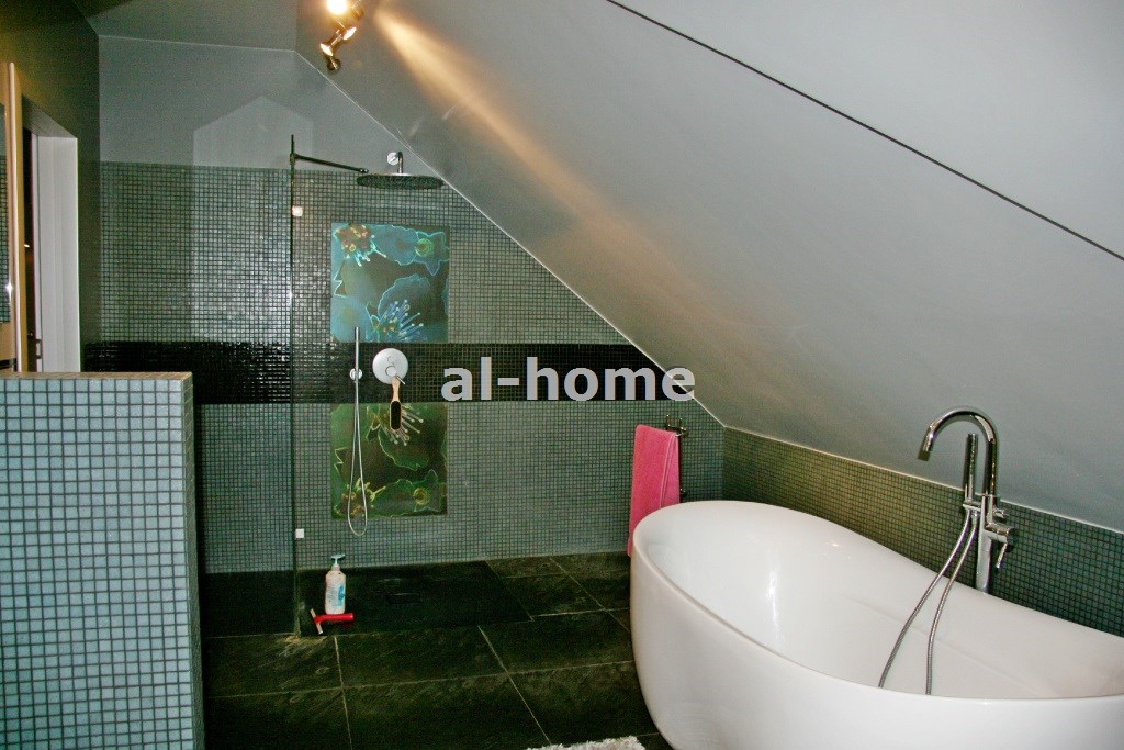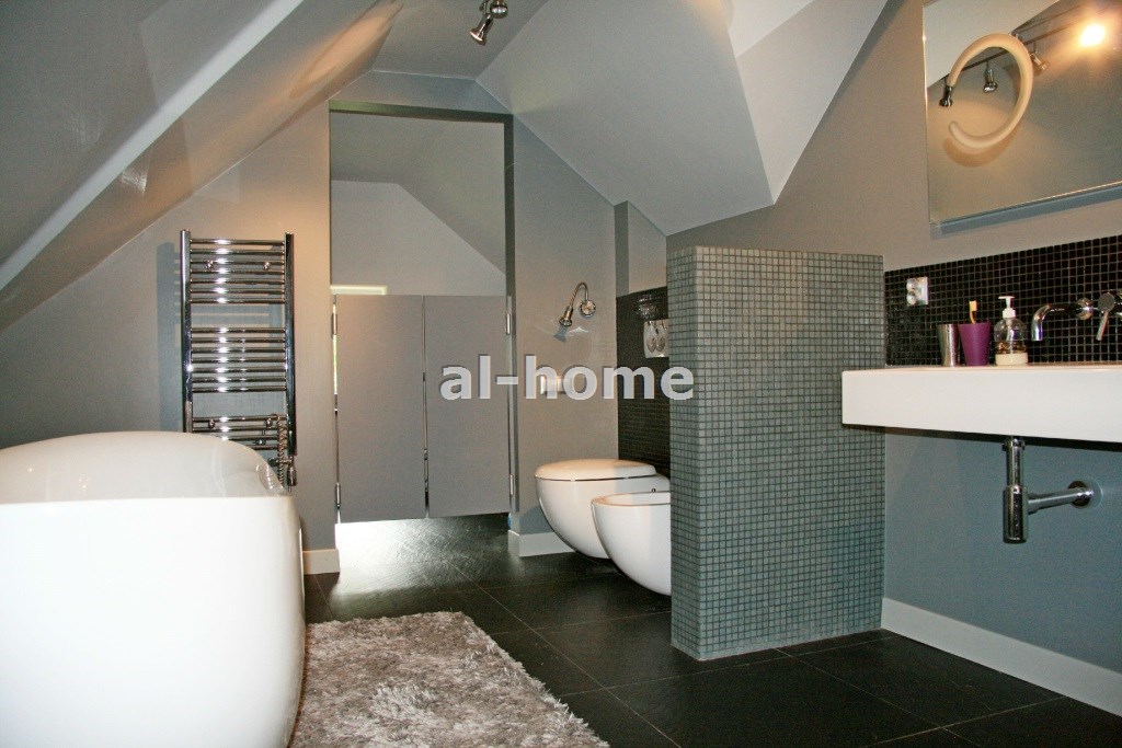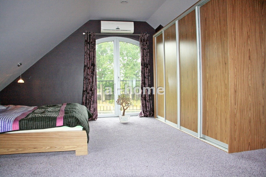 Na piętrze: trzy sypialnie w tym jedna z łazienką, druga łazienka z pralnią i suszarnią, dwa balkony.