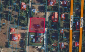 Powierzchnia działki to 909 m2 prawie w kwadracie. Działka płaska, ogrodzona, położona przy utwardzonej i oświetlonej drodze gminnej.