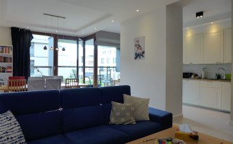 Dogodnie usytuowany wewnątrz osiedla Avangarden projektu JEMS Architekci. Dwustronny, widny, na pierwszym piętrze z widokami na wewnętrzne zielone dziedzińce. Bez szumu z ulic. Brak sklepów i powierzchni użytkowych poniżej mieszkania.