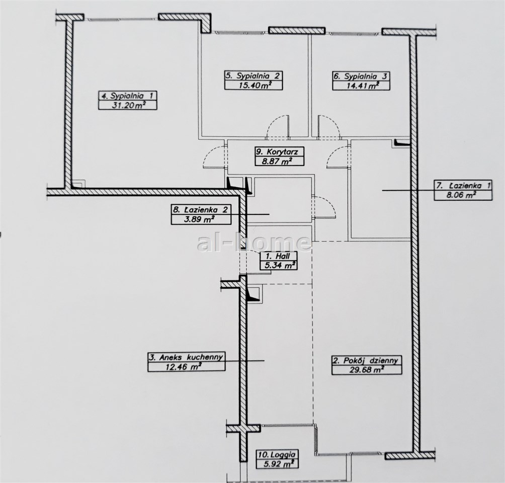 Przestronny pokój dzienny z kuchnią o łącznej powierzchni 42 m2 z wyjściem na loggię 5,9 m2. Trzy sypialnie o powierzchniach ponad 31; 15 i 14 m2. Dwie łazienki 8 i blisko 4 m2. Wszystkie pokoje ustawne, widne, zgodne z pierwotnym układem.