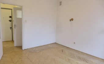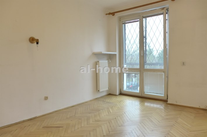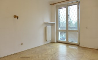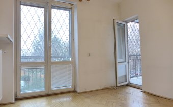 Mieszkanie na pierwszym piętrze z czterech, południowe z nieskrępowanym widokiem na zieleń ogródków działkowych. Wysokie na 2,7 m, pokój o powierzchni 12 m2, z wyjściem na loggię 2 m2. Widna oddzielna kuchnia 9 m2, łazienka 2,5 m2 i przedpokój ok. 2,5 m2.