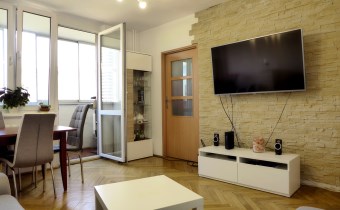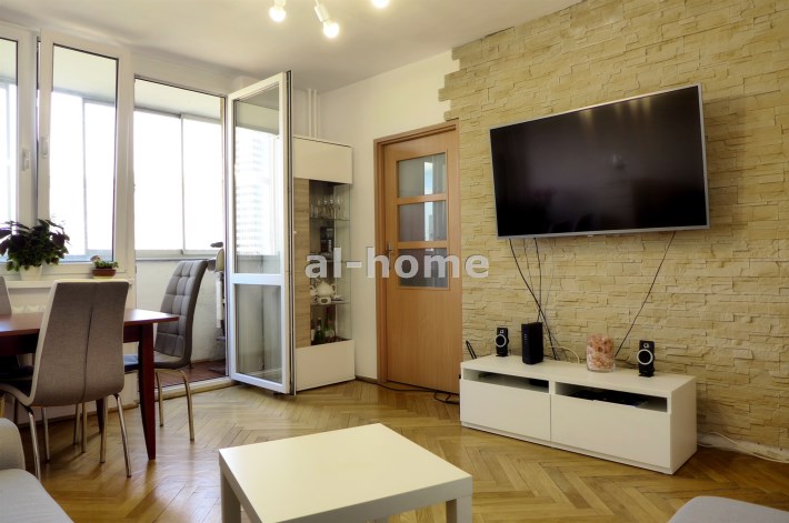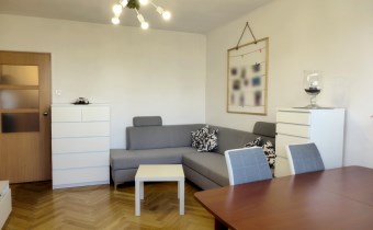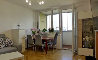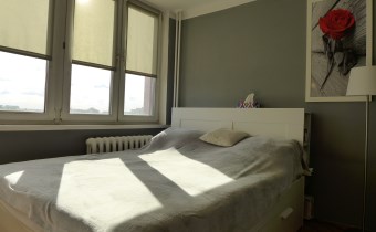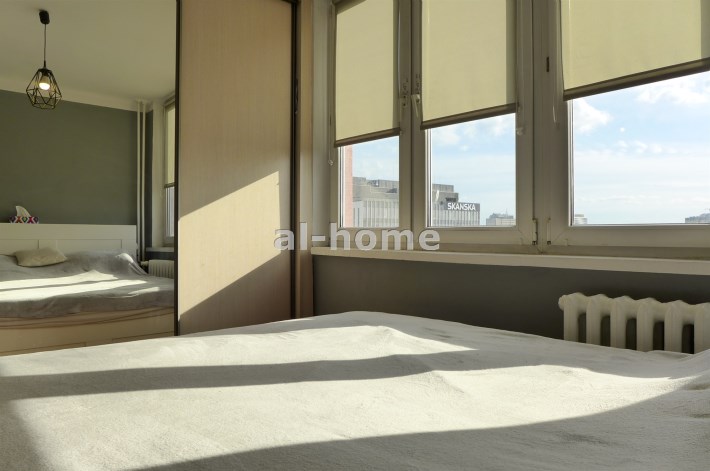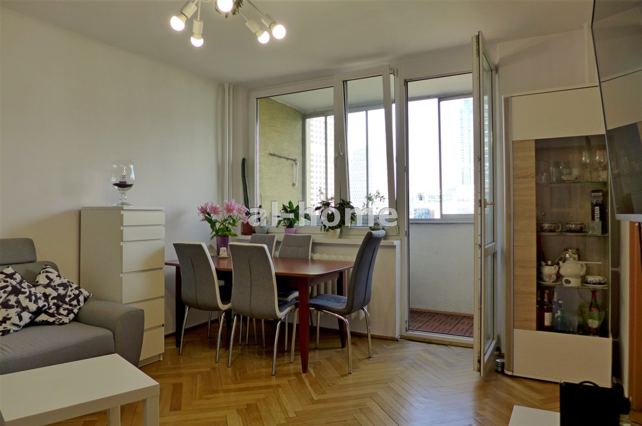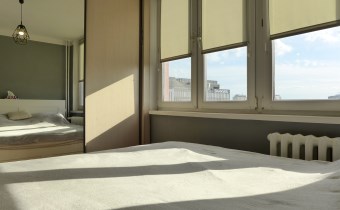 Cztery pokoje na 62 m2. Dziewiąte piętro z piętnastu. Pierwsze dwa poziomy zajmują lokale usługowe i biura. Budynek z lat 70. monitorowany z ochroną. Wymienione piony instalacyjne, odnowione klatki schodowe, nowe windy.